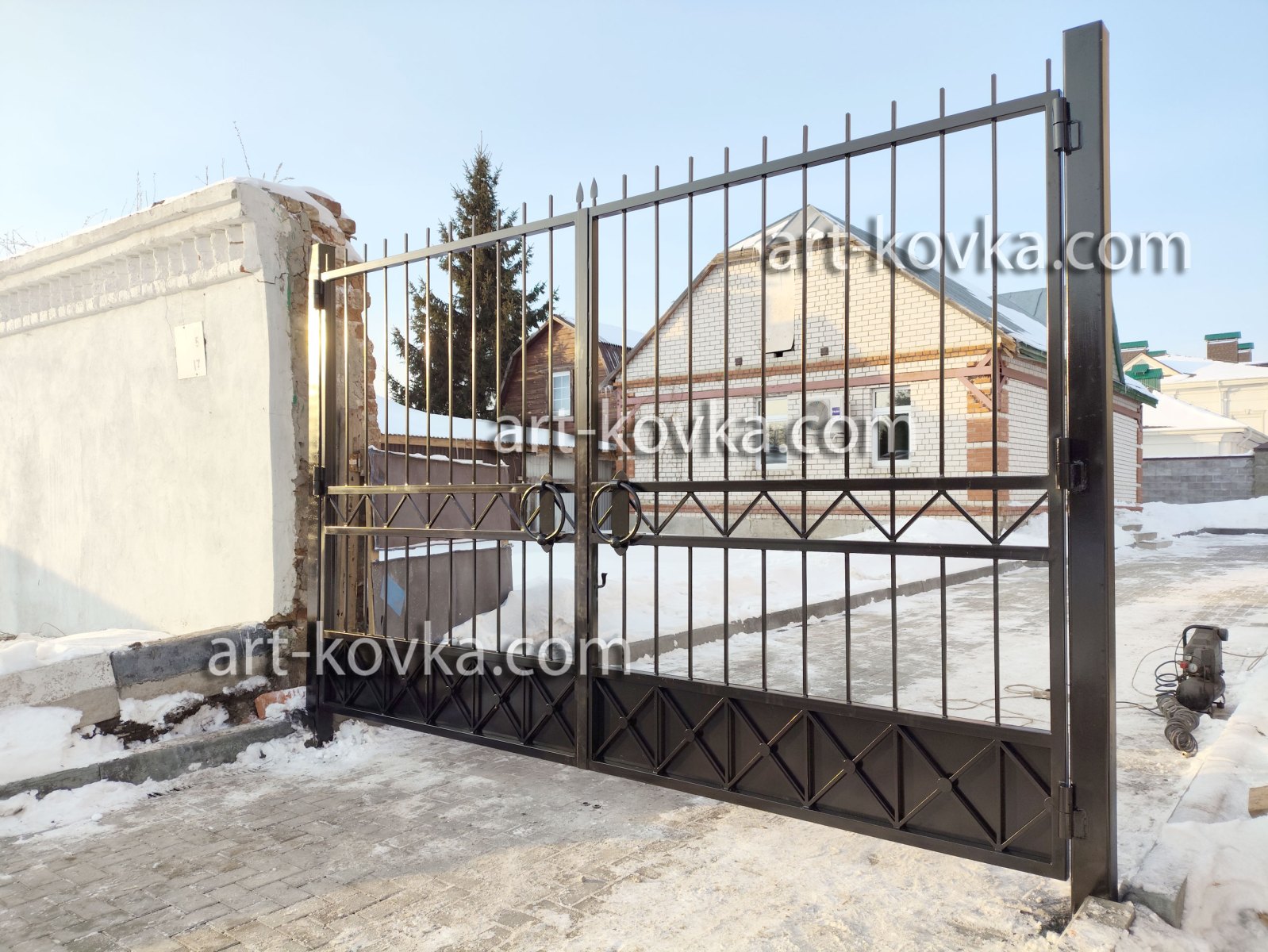 Поэтому именно кованые ворота пользуются большим спросом. Ворота изготовленные в нашей кузнице отличаются эстетичным дизайном, а так же надежной и прочной конструкцией. Ворота могут быть прозрачными — «на просвет» или глухими- закрытыми металлическим листом, а также частично прозрачными.